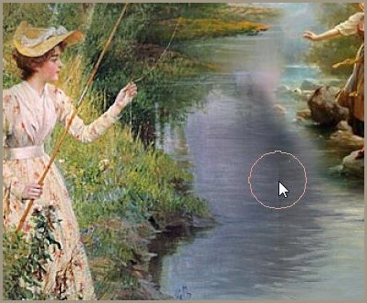 9 - Ouvrir le tube cm_damapescando001.pspimage Modifier/Copier/Modifier/Coller comme nouveau calque Image/Redimensionner à 75% décocher " tous les calques"Placer dans la partie inférieure gauche **Réglages/Netteté/Davantage de netteté