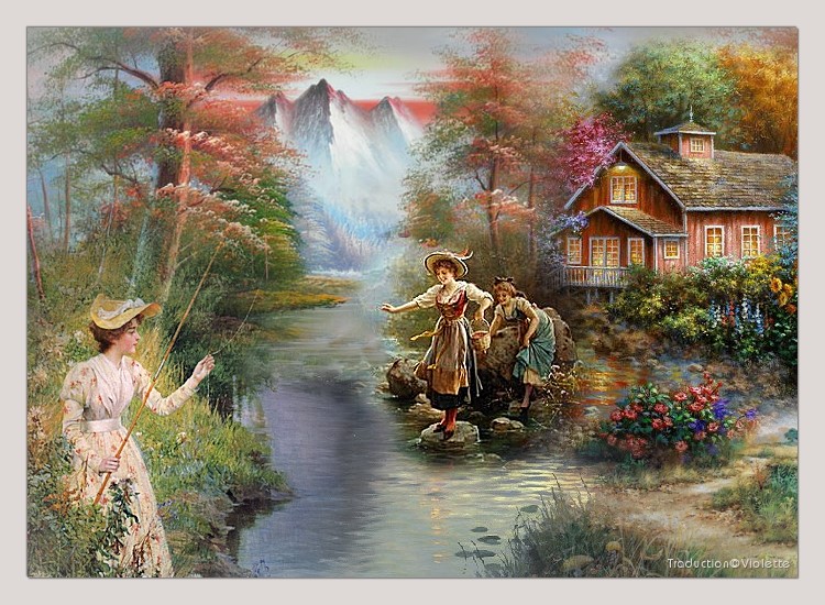 4 - Activer le tube CottageByLakeBoats.psp Modifier/Copier/Modifier/Coller comme nouveau calque Placer à droite