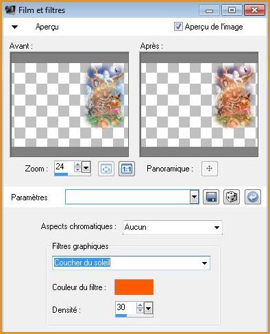14 - Effets/Effets photo/Film et Filtres réglages suivants :