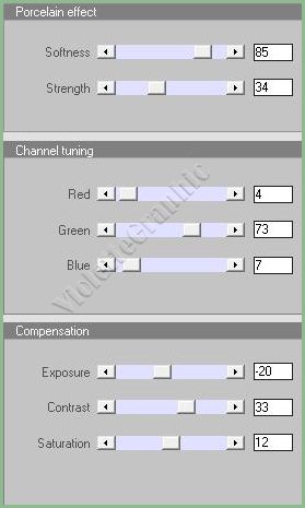 14 - Calques/Fusionner tout 15 - Effets/Xero XL/ Porcelain réglages suivants: