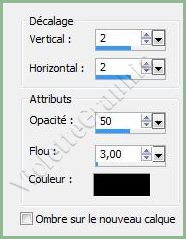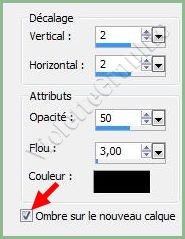 **Effets/Effets 3D/Ombre Portée : 2/2/50/3/couleur #000000Ombre sur le nouveau calque coché
