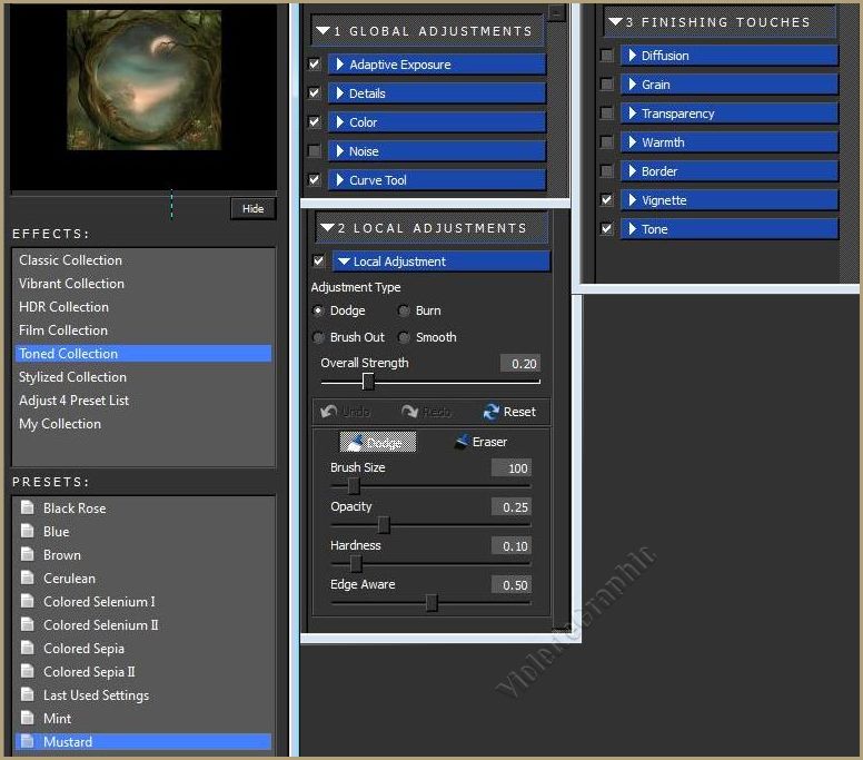 3 - Effets/Topaz Labs/Topaz Adjust 5 réglages suivants :
