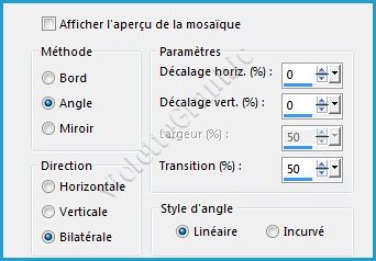 **Effets/Effets d'image/Mosaïque sans jointure réglages suivants: