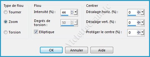 **Réglages/Flou/Flou radial réglages suivants :