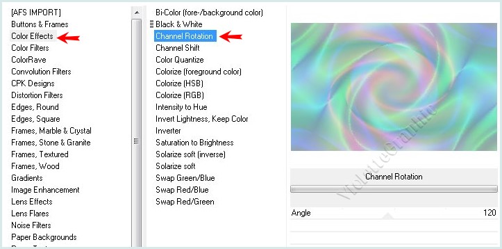 **Effets/Unlimited/Color Effects /Channel Rotation réglages suivants :