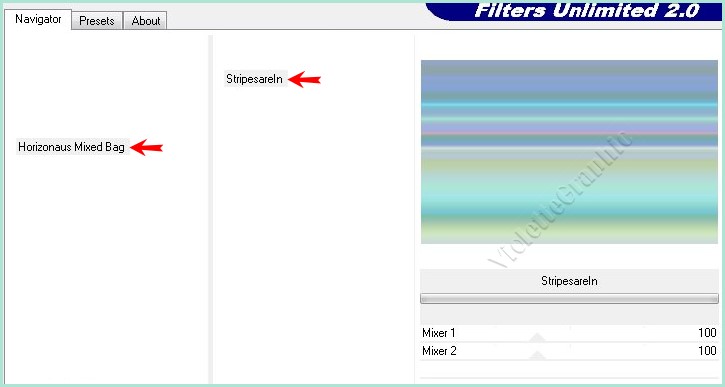 **Effets/Unlimited/Horizonaus Mixed Bag / Stripesareln réglages suivants :
