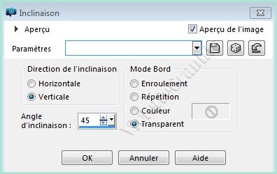 **Effets/Effets géométriques/ inclinaison réglages suivants :