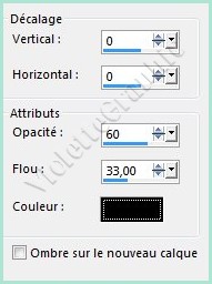 **Effets/Effets 3D/Ombre Portée : 0/0/60/33/couleur #000000