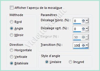 **Effets/Effets d'image/Mosaïque sans jointure réglages suivants: