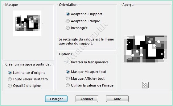 **Activer le masque maszk lizett 2.jpg Calques/Nouveau calque de masque/à partir d'une image/Ajout d'un masque à partir d'une image sélectionner le masque maszk lizett 2.jpg