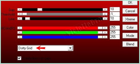 **Effets/Effets de bords/Accentuer Effets/AP Lignes/ Silverlining /Dotty Grid réglages suivants :