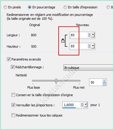 **Image/Redimensionner à 85%/décocher " Redimensionner tous les calques"
