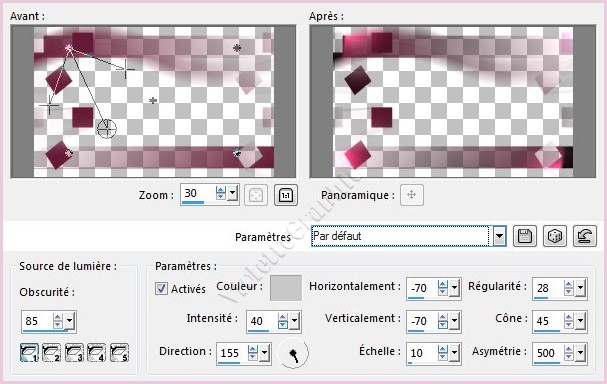 **Effets/Effets d'éclairage/projecteurs réglages suivants :