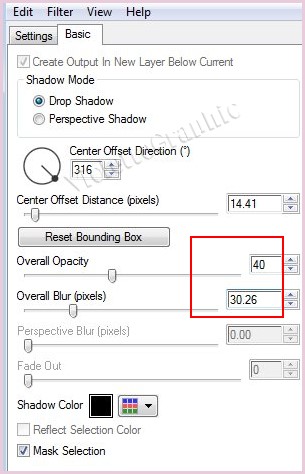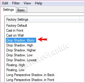 Effets/Alien Skin Eye Candy 5 /Impact Perspective Shadow **Onglet Settings:
