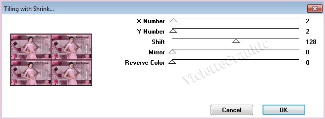 **Effets /Unlimited 2/ MuRa's Seamless / Tiling Wiht Shrink réglages suivants :