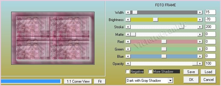 **Effets /AAA Frames/ Foto Frame réglages suivants :