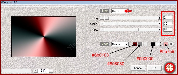 4 - Calques/Nouveau calque ** Effets/Mehdi / Wavy Lab 1.1/réglages suivants :