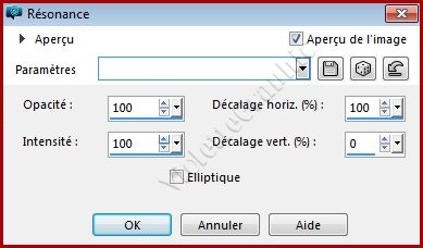**Effets/Effets de réflexion/Résonnance réglages suivants :