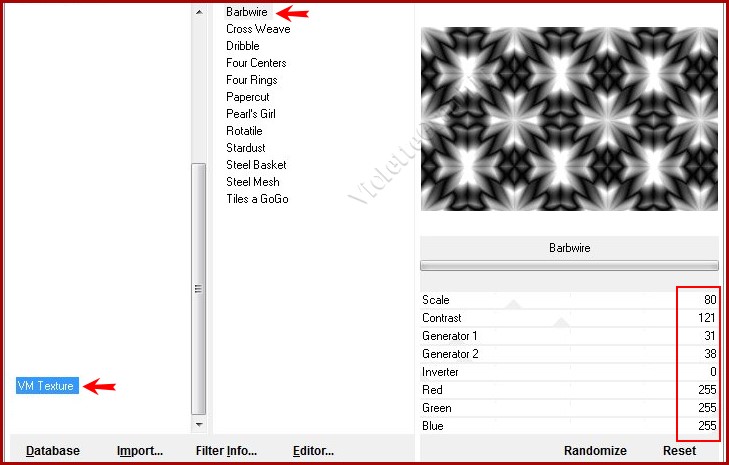 2 - Effets/Unlimited 2 / VM Texture / Barbwire réglages suivants :