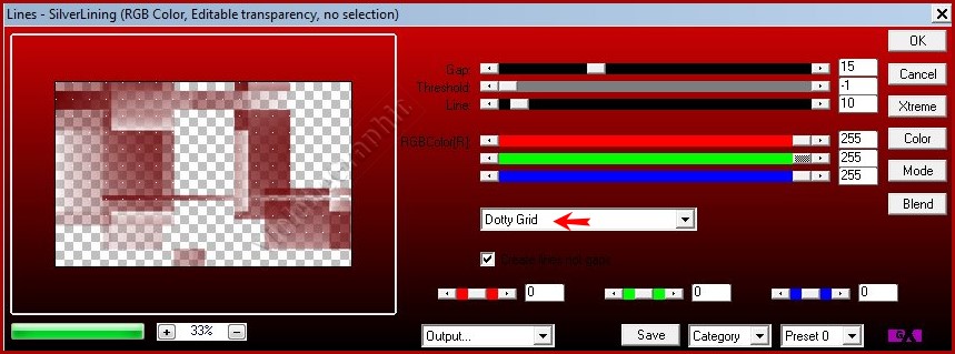 **Effets/AP 01 (Inivation)/Lines - Silverlining réglages suivants :