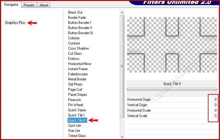 **Effets/ Unlimited 2 / Graphics Plus / Quick Tile II réglages suivants :