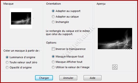 **Activer le masque Graciella maszk negy.jpg Calques/Charger/Enregistrer un masque/Charger à partir du disque Choisir le masque Graciella maszk negy.jpg