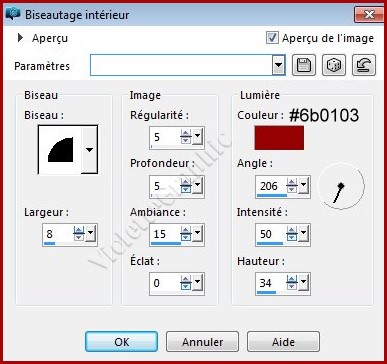 ** Effets/Effets 3D/Biseautage Intérieur réglages suivants :