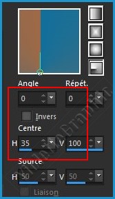*** 1 - Ouvrir une image transparente de 800 x 500 pixels Remplir de dégradé rectangulaire angle: 0°/Répétition : 0/Inverser non cochéCentre: hor.= 35/ vert.=100