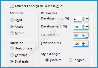 **Effets/Effets d'image/Mosaïque sans jointure réglages suivants: