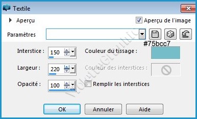 **Effets/Effets de Textures/Textile réglages suivants :