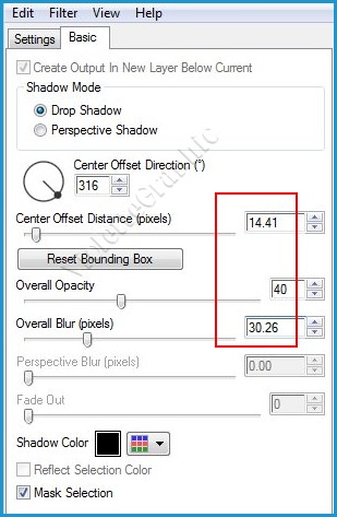 **Effets/Alien Skin Eye Candy 5 /Impact Perspective Shadow réglages suivants **Onglet Settings Drop Shadow, Blurry