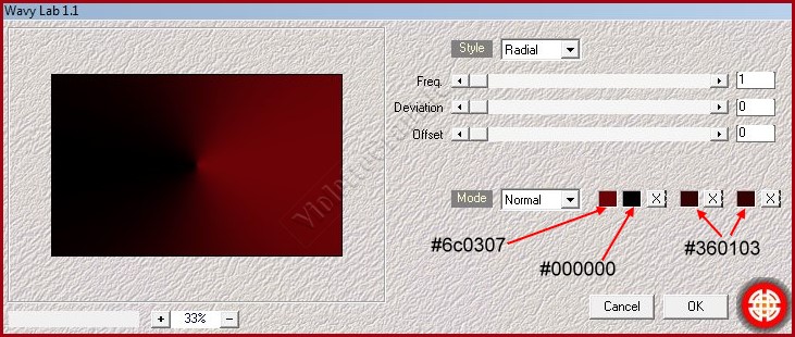 *** 1 - Ouvrir une image transparente de 800 x 500 pixels Remplir de couleur #000000 **Effets/ Mehdi / Lab Wavy réglages suivants: