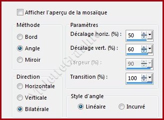 **Effets/Effets d'image/Mosaïque sans jointure réglages suivants :