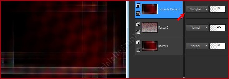 **Activer le calque supérieur Placer en mode de fusion: Multiplier Opacité à 100%