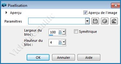 3 - Effets/Effets de Distorsion/ Pixellisation réglages suivants :