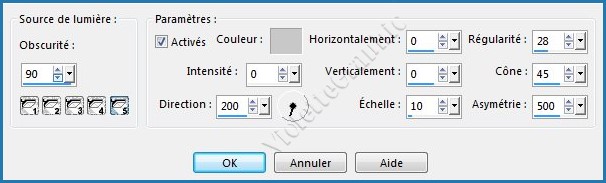 **Effets/Effets d'éclairage/projecteurs réglages suivants :