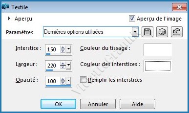 **Effets/Effets de Textures/Textile réglages suivants :