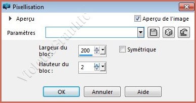 **Effets/Effets de Distorsion/ Pixellisation réglages suivants :