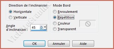 2 - Effets/Effets géométriques/inclinaison réglages suivants :