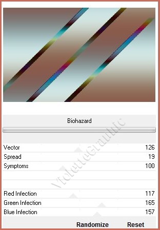 ** Effets/Unlimited 2 / Colorisation VM / Biohazard réglages suivants :