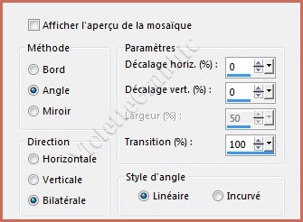 **Effets/Effets d'image/Mosaïque sans jointure réglages suivants :