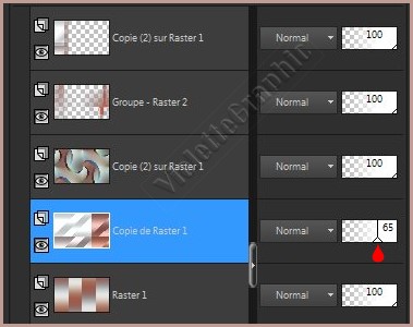 6 - Activer le calque Copie de Calque 1 Placer l'opacité à 65%
