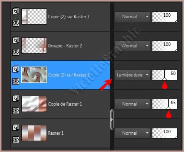 **Activer le calque Copie(2) de Calque 1 Placer en mode de fusion: Lumière Dure Opacité à 50%
