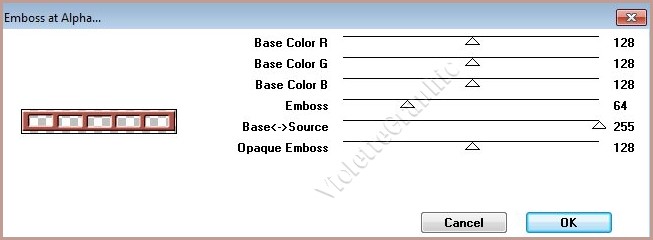Remplir de couleur #a6584c Effets/Mura's seamless / Emboss at Alpha réglages suivants :