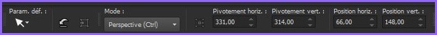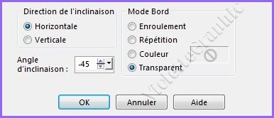 **Effets/Effets géométriques/inclinaison réglages suivants :