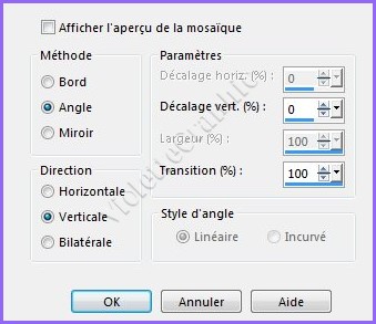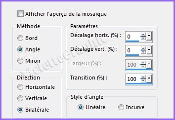 **Effets/Effets d'image/Mosaïque sans jointure réglages suivants:
