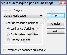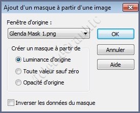 **Activer le masque Glenda Mask 1 Calques/Nouveau calque de masque/à partir d'une image/Ajout d'un masque à partir d'une image sélectionner le masque Glenda Mask 1