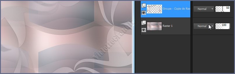 3 - Ouvrir le tube Glenda Deco01 Edition/Copier/Edition/Coller comme nouveau calque ** Calques/Réorganiser/Déplacer vers le bas Mode de fusion: Lumière Héritée Opacité : 100 **Activer le calque supérieur