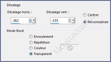 10 - Image/Redimensionner à 35%/décocher " Redimensionner tous les calques" **Effets/Effets d'image/Décalage réglages suivants :