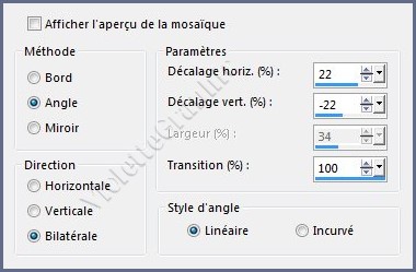 **Effets/Effets d'image/Mosaïque sans jointure réglages suivants: